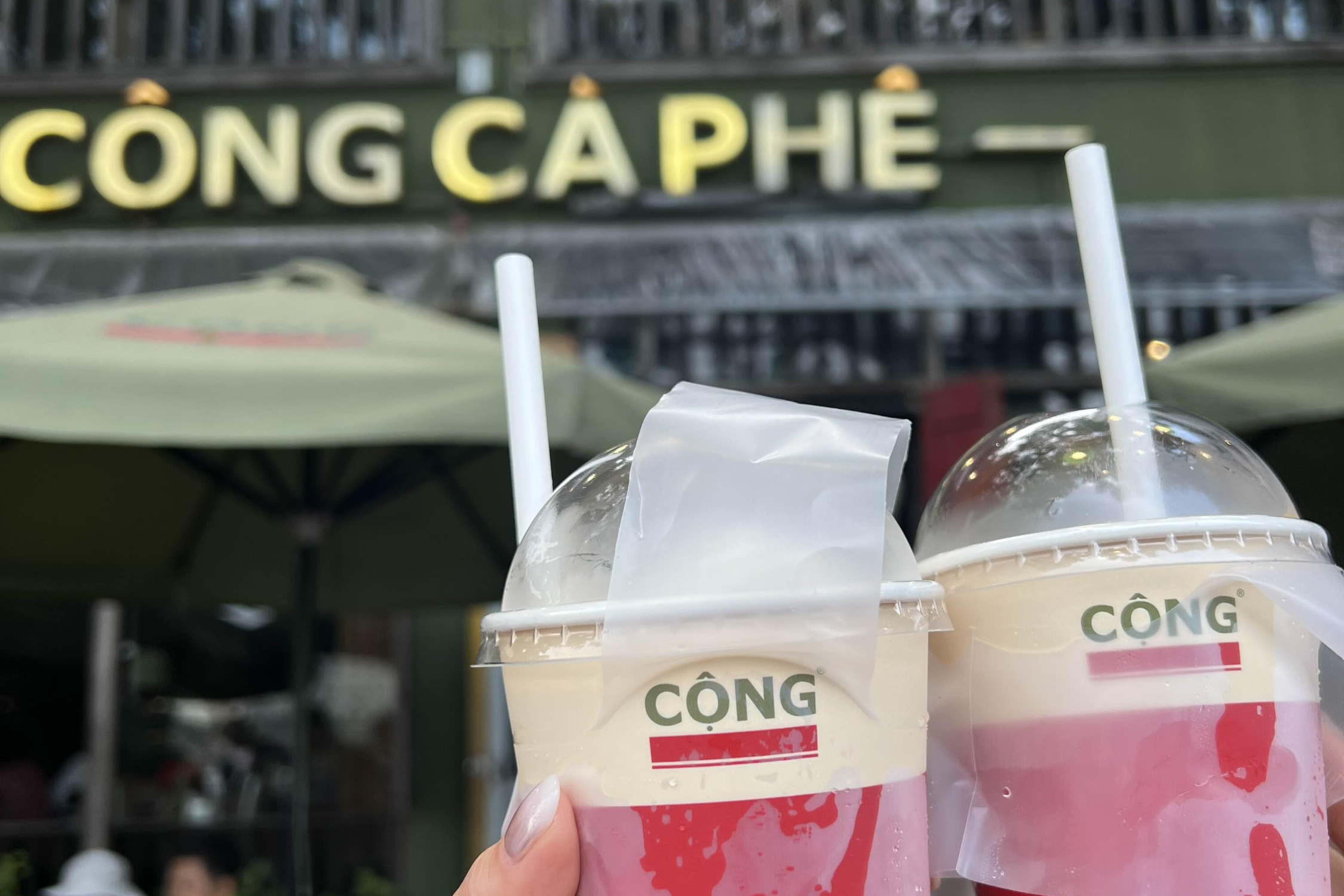 호이안 가는 택시 타기 전에 콩카페 테이크아웃🥤 한국에도 여기저기 많이 생겼던데 나는 베트남 다낭 여행 와서 처음 먹어봤고 코코넛스무디커피랑 코코넛카카오스무디 두 개 먹어봤는데 넘 달달 시원하고 맛있었음