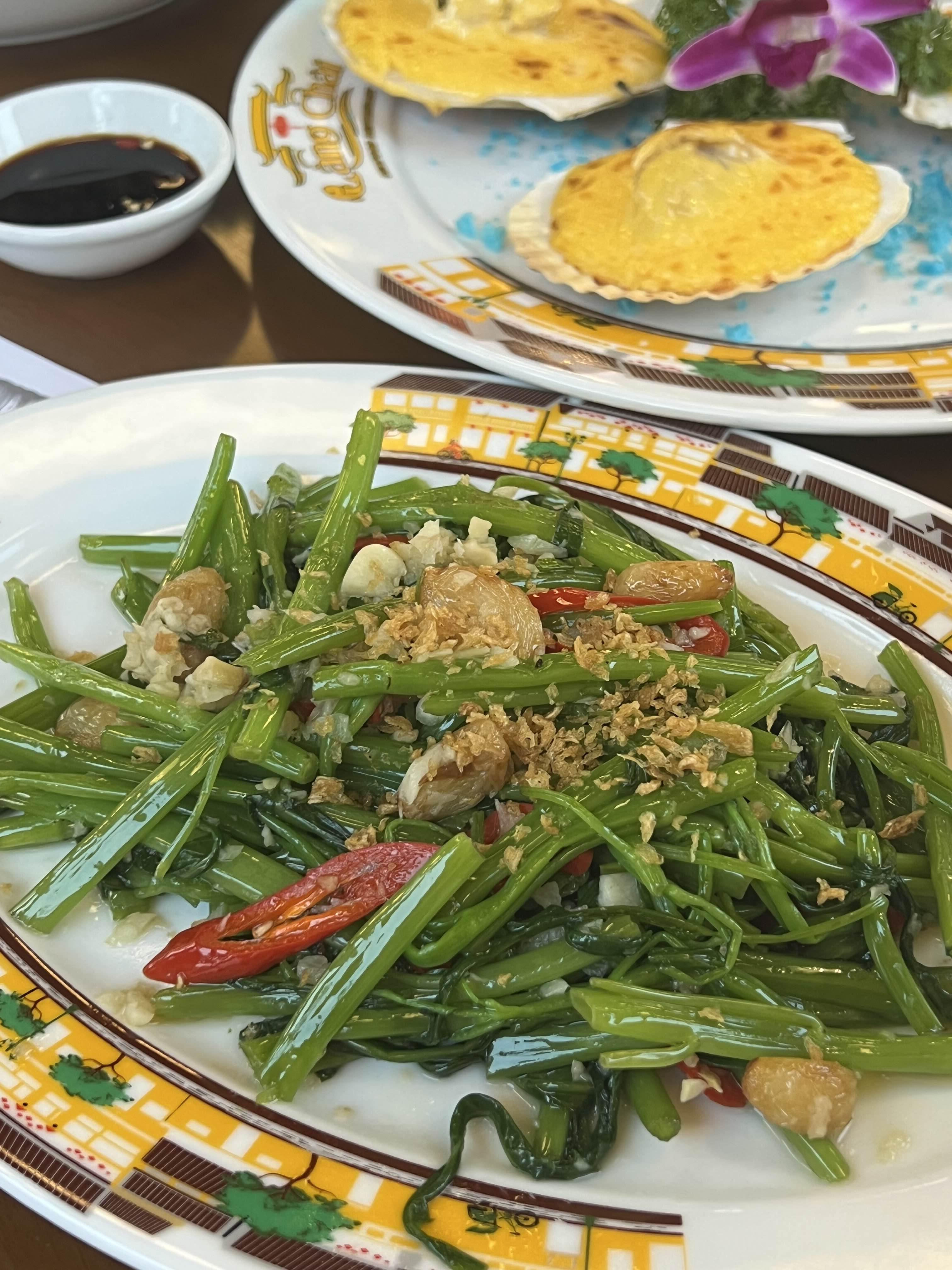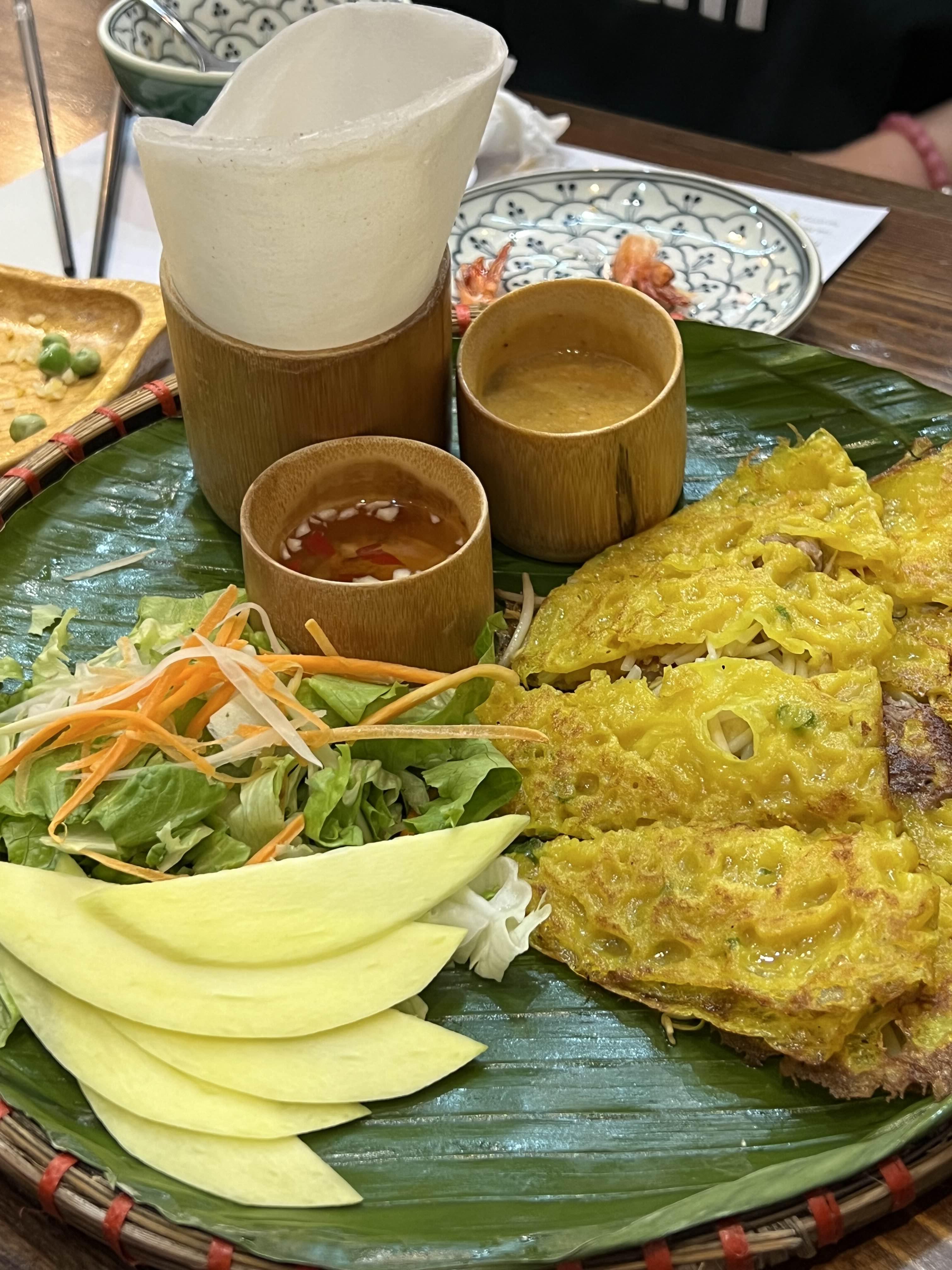 저녁은 호이안 야시장 근처 비스 마켓 레스토랑에서 이것저것 골고루 시켜먹었다. 푸드코트느낌으로 현지식당에 비해서 가격대는 높은 편이지만 깔끔하고 시원하고 맛있고 부모님 모시고 오기 좋은 곳이라는 후기 봤는데 바로 납득~ 관광객패치가 되어서 향신료도 강하지 않고 원래 고수는 입에도 못 대고 질색팔색하는데 향이 강하지 않아서 그런가 그냥저냥 안빼고 맛있게 먹었다🌿